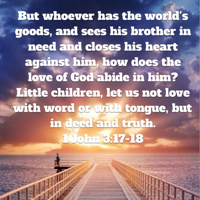 - Our love for others is not to be in word only. We are to love “in deed and truth.” If we see a brother or sister in need, and we have the means of meeting the need, we are not to close our hearts toward them. (1 John 4:20-21)