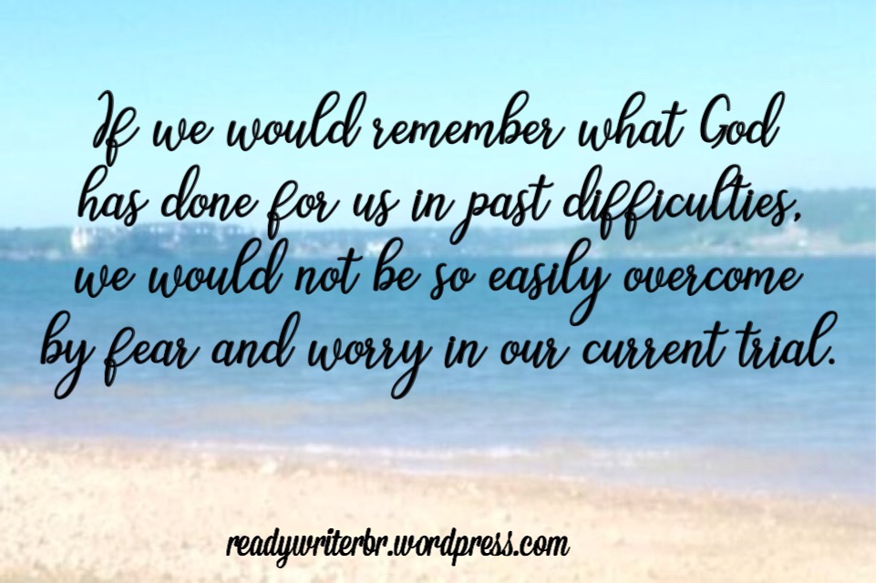 - Remember what God has done in the past, when He has come through for us in similar situations. This builds our faith that He will meet our current need also.
