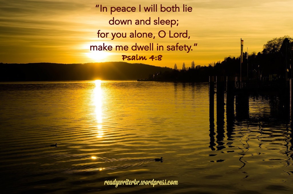 - Finally, remember God is in control, ruling in love and wisdom over our world whether we are awake or asleep. When you lay down to go to bed for the night, lay down your anxious thoughts as well. As you powered down your computer at least an hour below heading to bed, it’s now time to power down your mind and turn everything over to the One who never sleeps or slumbers (Psalm 121:4). Relinquish control to Him, relax and go to sleep. Almighty God is still on His throne, and He can handle anything that might happen before it’s time for you to begin a new day. Close your eyes and go to sleep, confident He will make you dwell in safety through the night.