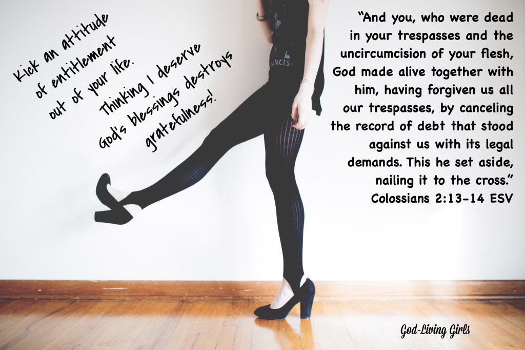 To choose an attitude of gratitude often begins by kicking an attitude of entitlement out of our lives. So how do we get over an “I deserve it” attitude? By recognizing God has already given us more that we could ever ask or imagine. and humbly thanking Him for His amazing goodness toward us as His adopted children. Humble gratefulness toward God and the people He has placed in our lives is the key to overcoming an attitude of entitlement.