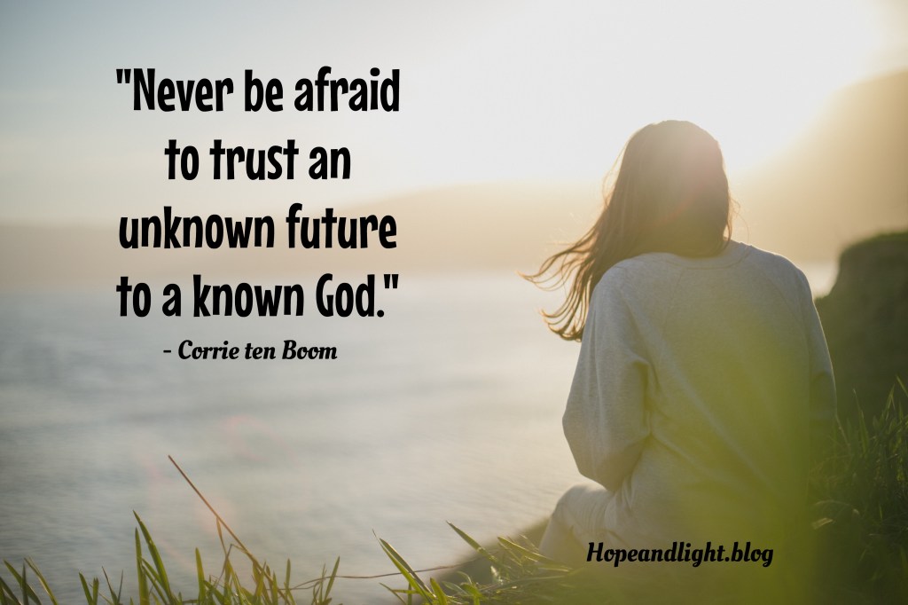 Corrie ten Boom, survivor of Ravensbruck German concentration camp and Christian speaker and author of The Hiding Place, a memoir telling the story of her family’s hiding Jews from the Nazis, said: “Never be afraid to trust an unknown future to a known God.”