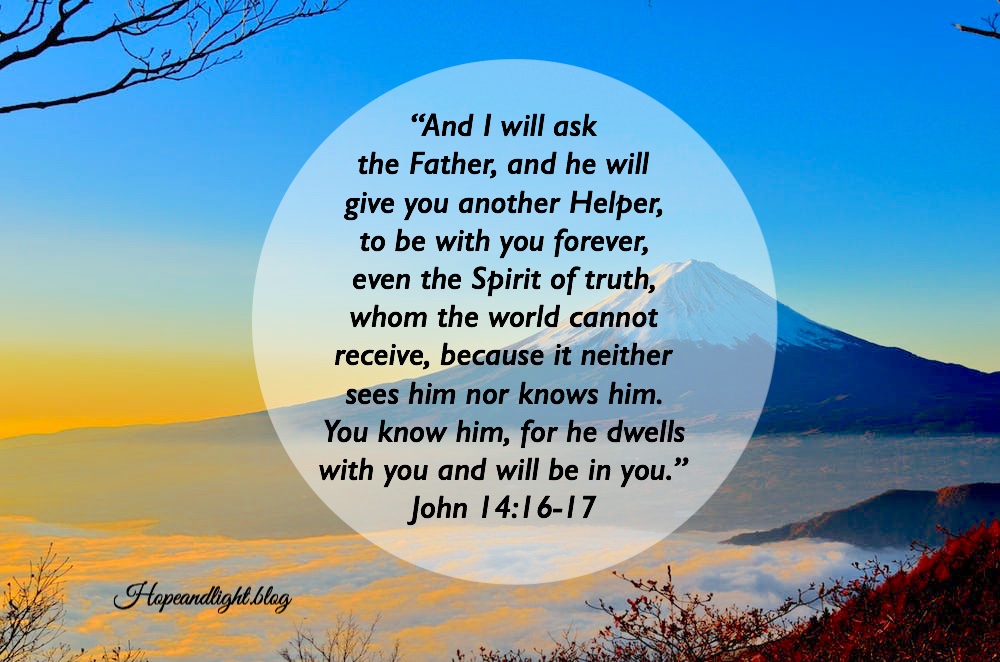 “And I will ask the Father, and he will give you another Helper, to be with you forever, even the Spirit of truth, whom the world cannot receive, because it neither sees him nor knows him. You know him, for he dwells with you and will be in you.” (John 14:16-17)